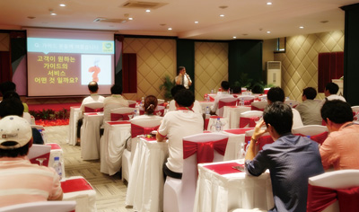 ㈜모두투어네트워크(사장 한옥민)가 동계시즌 동남아 최고 인기 여행지중 한 곳인 캄보디아 씨엠립과 앙코르와트 현지 가이드에 대한 대대적인 서비스 교육을 실시했다. 지난 11월25일부터 27일까지 3일에 걸쳐 씨엠립의 소카라이 호텔 내 연회장에서 약 90여명의 현지 가이드를 대상으로 진행한 이번 교육은 김혁 모두투어 고객만족부 부서장이 직접 진행했으며 가이드 외에도 7개의 현지 랜드사 직원도 참가해 서비스 개선과 고객만족을 위한 교육이 집중적으로 이뤄졌다. 캄보디아의 최대 성수기인 동계시즌을 앞두고 가이드 확보 및 가이드 서비스 개선을 최우선으로 한 이번 교육은 종합적인 현지 가이드 및 거래처 직원들에게 서비스 교육을 통해 효과적인 성수기 진행과 고객감동을 실현할 수 있는 전문적인 교육으로 진행됐다.