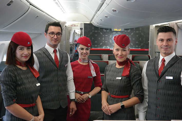 터키항공의 ‘따뜻한 환대, 편안한 비행’1_ 터키항공 비즈니스 클래스&라운지 터키항공 승무원©세계여행신문 180도 눕혀지는 편안한 좌석©터키항공 셰프가 직접 서빙하는 다양한 기내식 ‘완전히 눕혀지는 좌석’&..