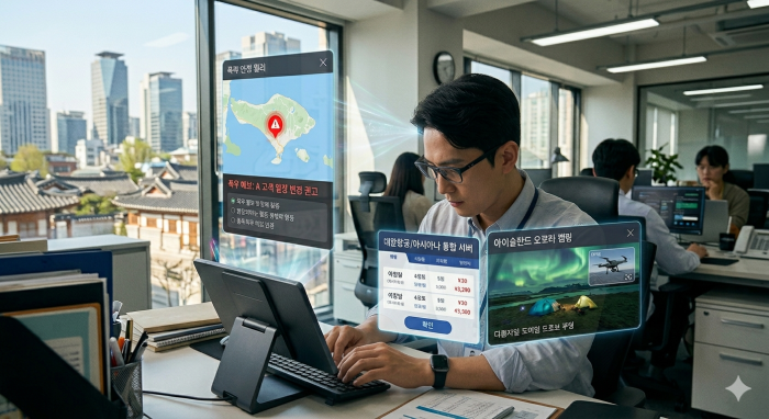 ‘대체 VS 강화’ 영역 구분…장기대책 세워야AI가 관광산업의 구조를 빠르게 바꾸고 있다. 특히 최근 주목받는 ‘에이전틱 AI’는 여행사의 역할 자체를 재정의할 잠재력을 지니고 있다. 아직 완전한 상용화 단계는 아니지만, 항공 · 숙박 예약까지 AI가 자동으로 수행하는 시대가 도래할 경우 여행업의 기존 비즈니스 모델은 근본적인 변화를 맞게 될 것으로 보인다. 현재까지 관광산업에서 실질적인 성과를 내고 있는 것은 ‘생성형 AI’이다. 생성형 AI는 맞춤형 여행 콘텐츠를 제작하고 고객의 관심을 유도하는 데 강점을 보이..